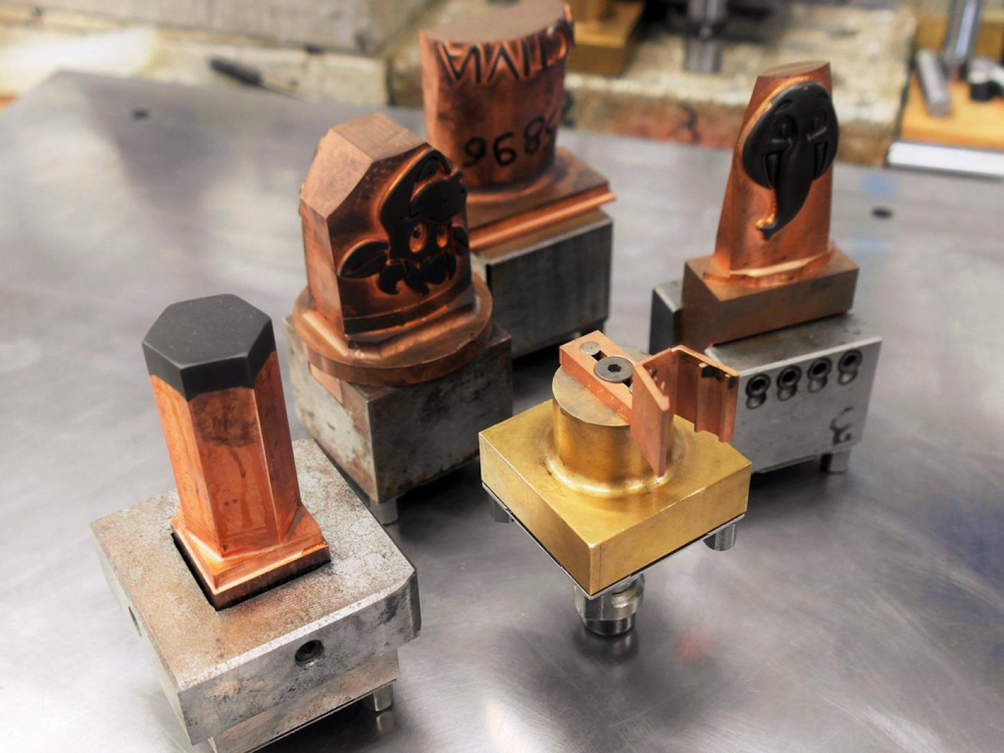 Notre parc de machines assure la création de tout type de poinçons : des poinçons à frapper en acier trempé, des poinçons à dorer (en laiton ou en silicone) destinés au marquage à chaud sur tout type de support, ou au marquage à froid. Nos poinçons peuvent être en creux ou en relief.